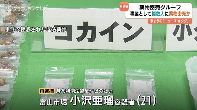 麻薬特例法違反などの疑いで再逮捕されたのは富山市堀の無職・小沢亜瑠容疑者(21)です。
