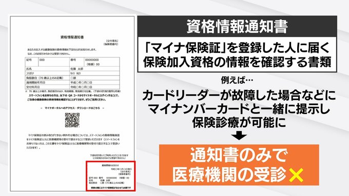 これは「マイナ保険証」を登録している人全員にすでに届いているもので、保険加入資格の情報を確認するための書類です。