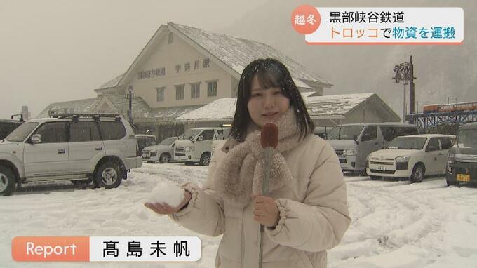 3日夜からの寒波の影響で黒部市宇奈月町でも、まとまった積雪となり、黒部峡谷鉄道の宇奈月駅では、黒部川上流で勤務する工事関係者などに届ける越冬物資の運搬作業が行われました。