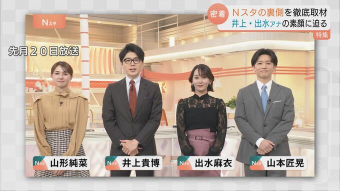 TBSの報道番組「Nスタ」メインキャスター、出水麻衣アナウンサーが5日、チューリップテレビのニュース番組「N6」(月~金・午後6時15分)に生出演しました。「Nスタ」キャスター就任から8か月、「情報が主役」という意識を大切に“おしゃべり装置”となって情報を伝える出水アナに密着し、番組づくりへの熱い思いと人柄に迫りました。