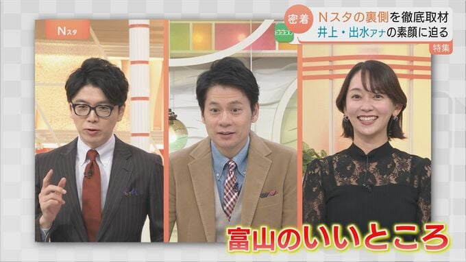 「きょうは富山、チューリップテレビの毛田アナウンサーがNスタの取材に来てくださっているということで、富山のいいところ。これでいってみましょう」