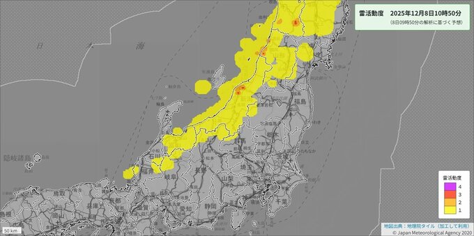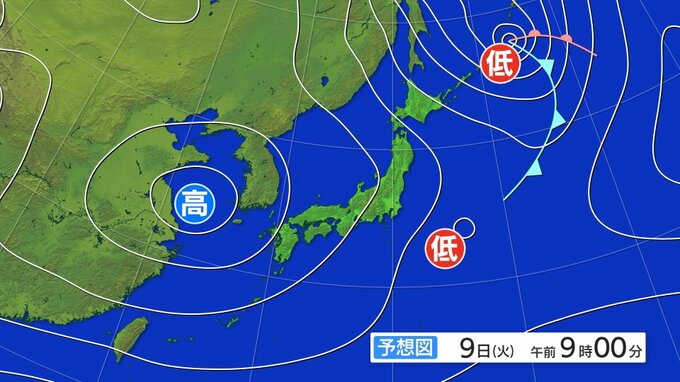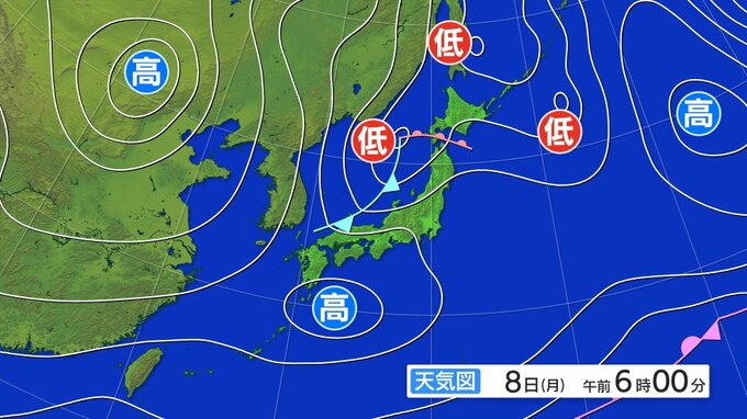 気象庁によりますと、8日は、北日本を東北東に進む低気圧からのびる寒冷前線が北陸地方を通過する見込みです。低気圧や前線に向かって暖かく湿った空気が流れ込むため、北陸地方では大気の状態が非常に不安定となり、局地的に積乱雲が発達するでしょう。