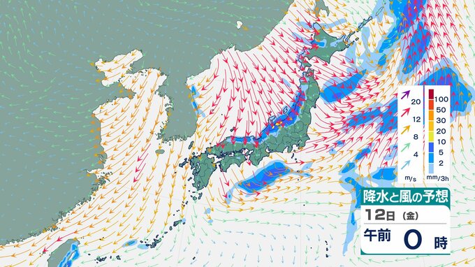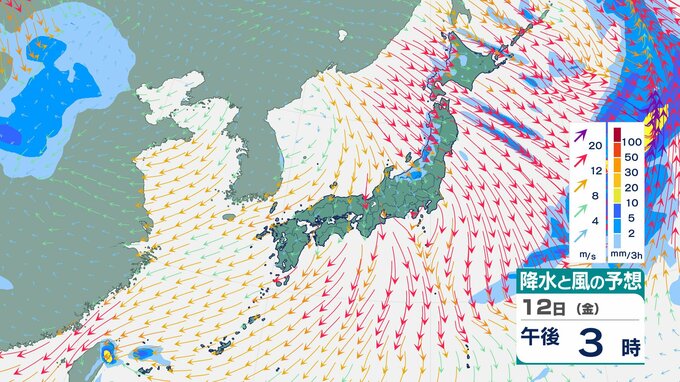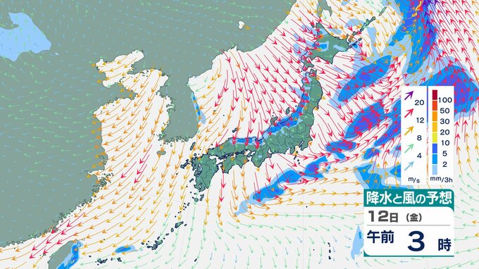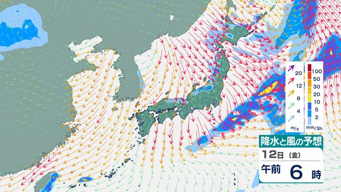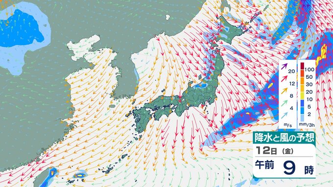 ニュースクリップ 近畿・中国・四国・九州北部地方…この時期としては“10年に一度”レベルの著しい高温の可能性 九州北部で平年差+2.9℃以上【雨風シミュレーション】 2025年12月8日(月) 20:05 国内 天気 12日(金)の雨と風のシミュレーション