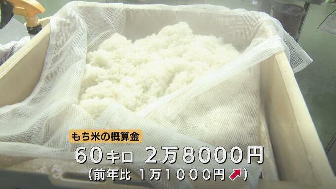 針歳暮の価格は、もち米の量を減らして価格を抑えたものの、正月餅などは値上げせざるを得ない状況だといいます。