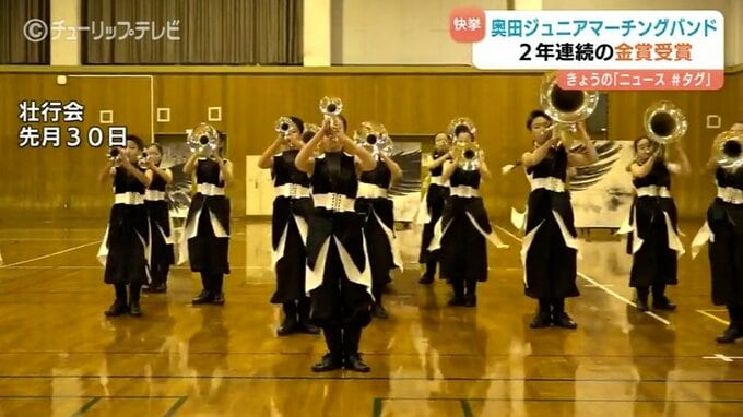 6日に埼玉県で開催された中学生のマーチングバンドの全国大会に富山県から出場した「奥田ジュニアマーチングバンド」が2年連続の金賞を受賞しました。