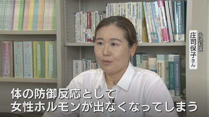 「体の防御反応として、女性ホルモン出なくなってしまう。卵巣機能がお休みしてしまって。それが何が影響するかというと、骨密度をためなければいけない大事な思春期のときに、女性ホルモンがなくなっちゃうので、骨密度がすごく低くなってしまうのでちょっとしたことで骨折したりとかすることが将来的に待っている」