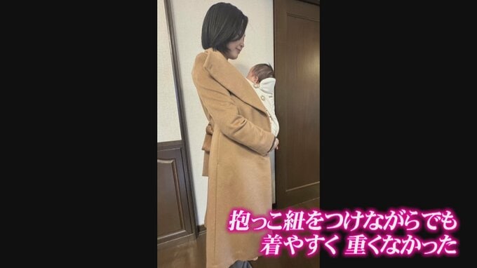 抱っこ紐をつけながらでも着やすく重くなかったのがいちばんの決め手だったそう。