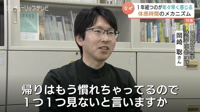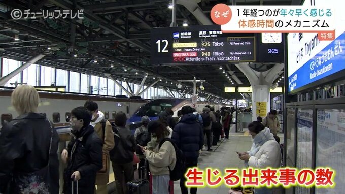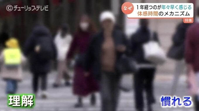 年を重ねるごとにその出来事を「理解」し、「慣れる」ことで1つ1つを「出来事」として認識しなくなり、「1年があっという間に感じる」ということです。