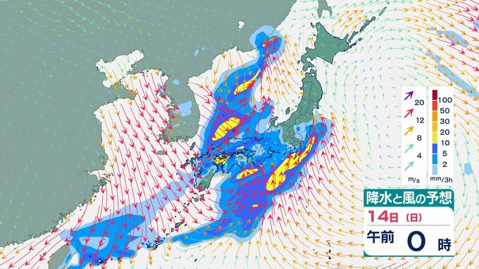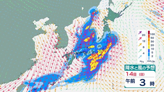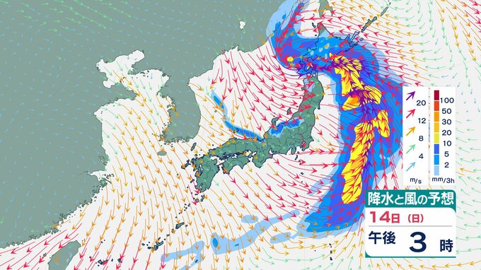 ニュースクリップ 【気象情報】北陸地方の海上では強い風が吹き13日未明にかけて海はしける所がある見込み 12日昼前にかけて石川県では警報級の高波に 新潟県でも警報級の高波となるおそれが…【雨風シミュレーション】 2025年12月12日(金) 06:48 国内 天気 14日(日)の雨と風のシミュレーション