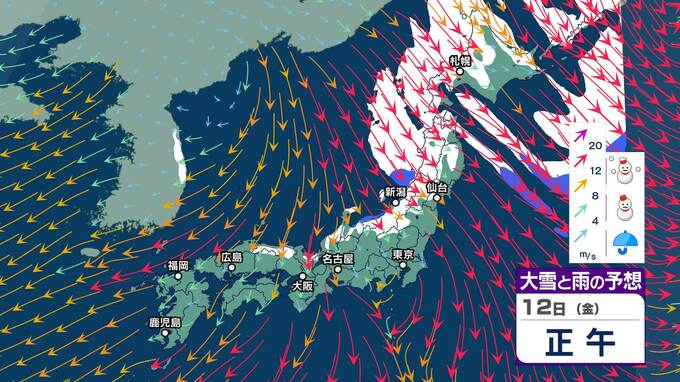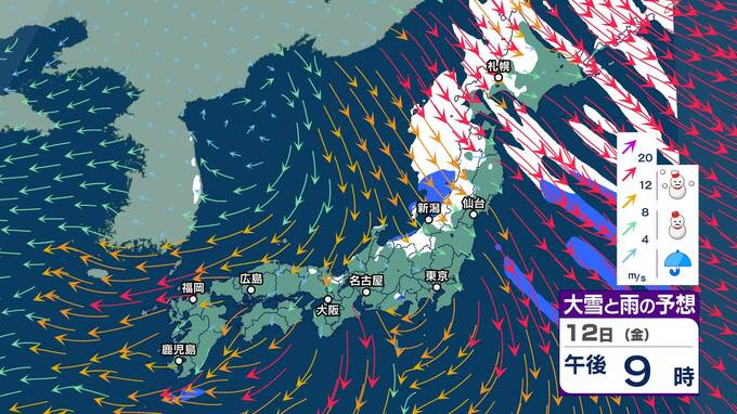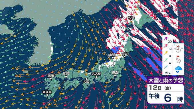 【大雪情報】東北北部は大雪となる所がある見込み 大雪による交通障害に注意・警戒を 警報級の大雪となる可能性も…13日朝までの24時間降雪予想は東北日本海側・太平洋側の山沿いで50センチ 東北日本海側の平地で20センチ 東北太平洋側平地で15センチ【大雪と雨シミュレーション】 2025年12月12日(金) 11:28 国内 天気 13日(金)大雪と雨のシミュレーション