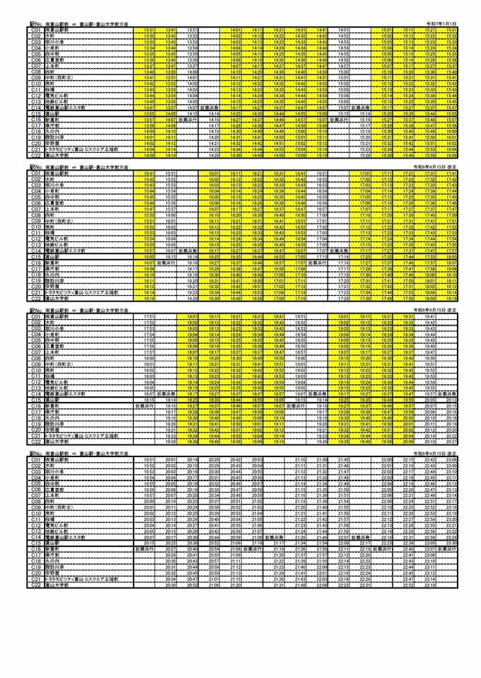 地鉄市内電車、南富山駅前~富山大学前間 1月1日のみ概ね10分間隔の運転に 環状線・富山港線は休日ダイヤで運転 富山 2025年12月12日(金) 15:30 国内 【画像】1月1日の特別ダイヤ 画像はすべて富山地鉄HPより 南富山駅前~富山駅・富山大学前方面 富山大学前~富山駅・南富山駅方面