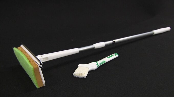 「キッチンの漂白剤、いわゆるハイターを使う。実は(一般的なカビ取り用洗剤より)ハイターの方が成分が強い。それを5倍に薄めて作業されると、きれいに落とせるかな」