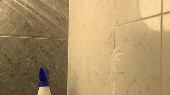漂白剤を塗布したら、約30分待って汚れを浮かせます。その後、シャワーでしっかりと洗い流してください。