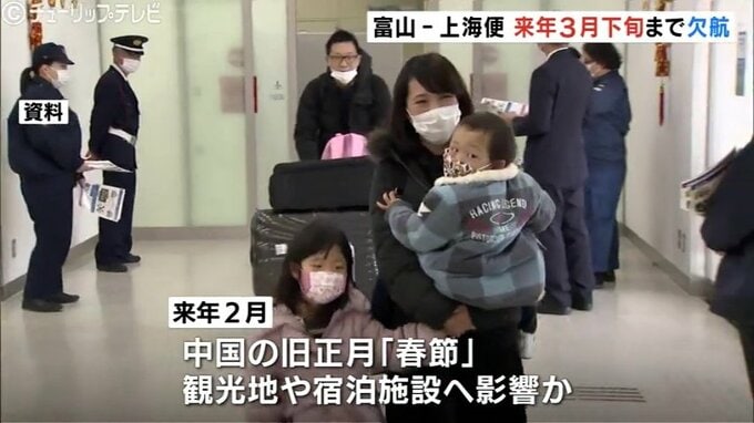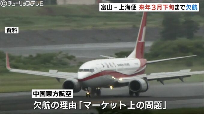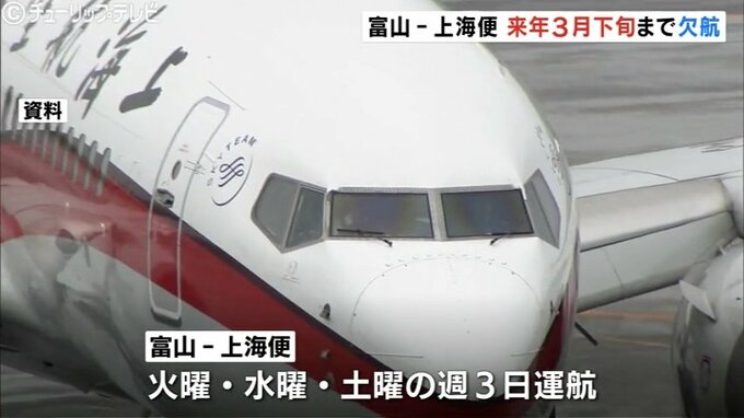 富山と上海を結ぶ定期便の欠航が来年3月下旬まで延長されることになりました。