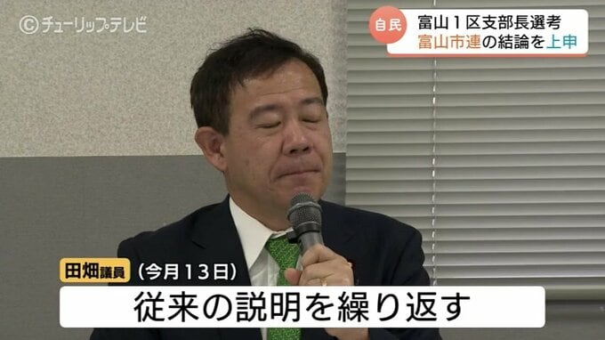 ”幽霊党員問題”田畑氏公認めぐり 自民富山県連が市連の判断尊重を確認 支部長に選任されない公算大 2025年12月16日(火) 19:34 国内 12月13日に開かれた幽霊党員問題をめぐる田畑裕明衆議院議員の釈明を受け、自民党富山県連は、富山市連での結論を党本部に上申する方針を確認しました。県連は16日の常任総務会で、次の衆院選で公認候補となる富山…