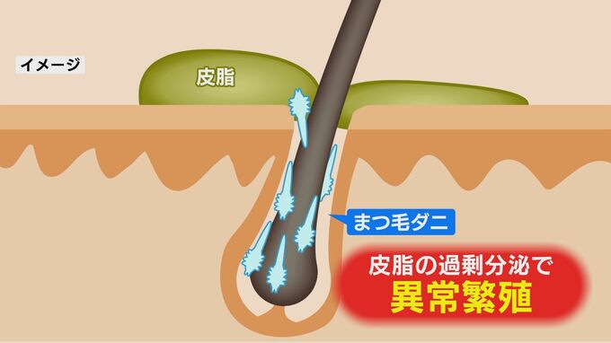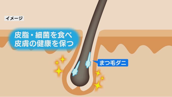 「まつ毛ダニ」は通常、皮膚のまわりの細菌や皮脂などを食べて皮膚の健康を保つ働きする、私たちの味方とも言える存在です。