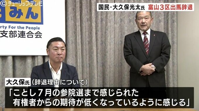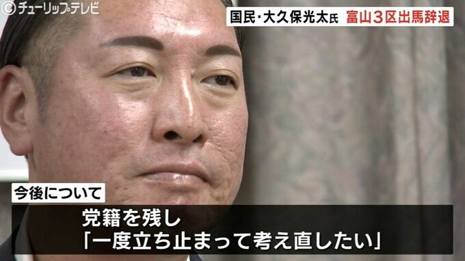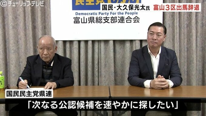 16日、国民民主党の大久保光太氏は、次期衆院選・富山3区での立候補を見送ることを決め、県連もこれを了承しました。