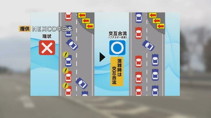 「2車線ある道路をフルで走行することで、よりスムーズな交通の流れになり、渋滞を軽減することができる。焦らずに1台ずつ、交互に譲り合う気持ちを持って、譲り合って合流をお願いします」