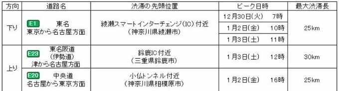 ▽ピーク日時=12月30日午前7時・1月2日午前10時・1月3日午前11時