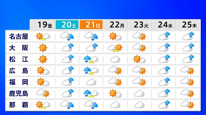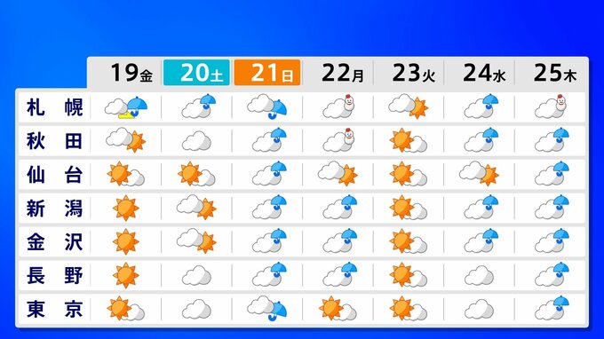 ニュースクリップ 沖縄と九州南部以外、日本の広い範囲が対象 「10年に一度程度しか起きないような著しい高温」の可能性 12月24日~1月1日にかけて 気象庁が早期天候情報を発表 2025年12月18日(木) 16:55 国内 天気 19日から25日の週間予報