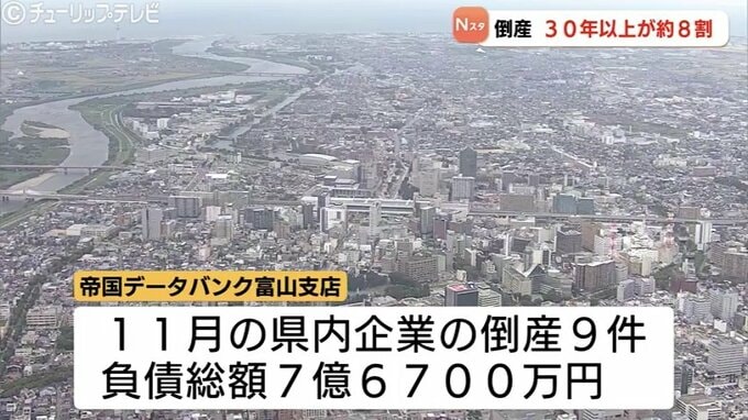 帝国データバンク富山支店によりますと、11月の県内の企業倒産は9件で、負債総額は7億6700万円となりました。