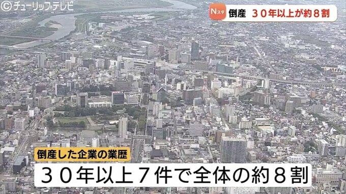 また倒産した企業の業歴は「30年以上」が7件と全体の約8割を占め、長期にわたり事業を継続してきた企業の倒産が目立っています。