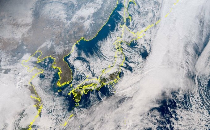 北海道地方を中心に3時間で9cm前後の降雪を観測しており、一方、南の先島諸島では13m/s前後の風が吹き、しけている所があります。