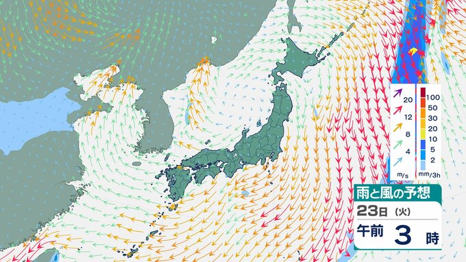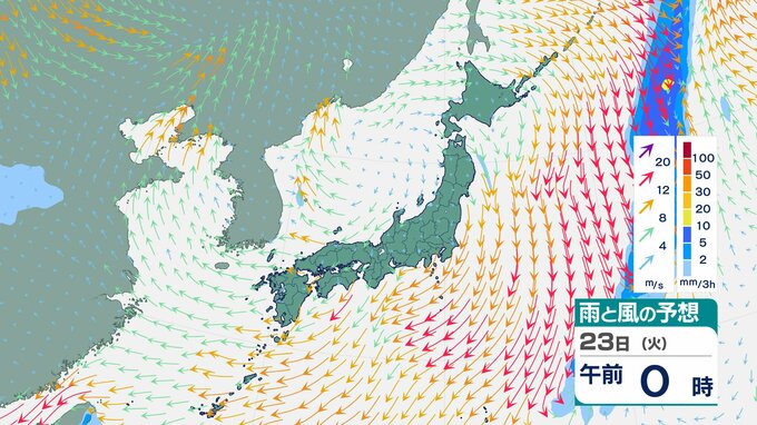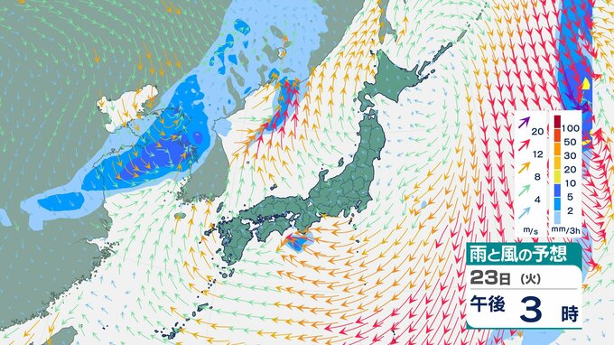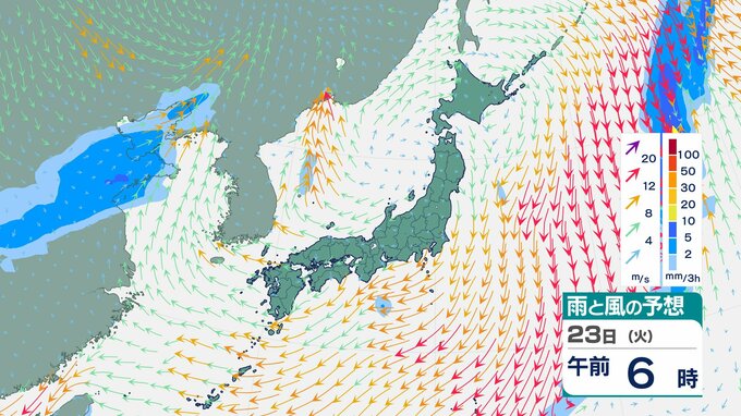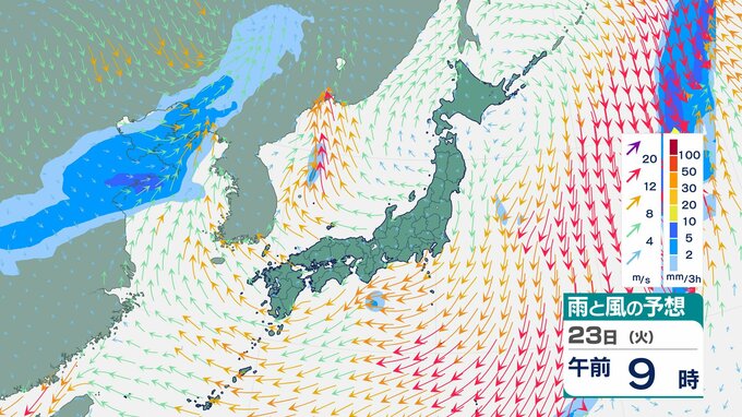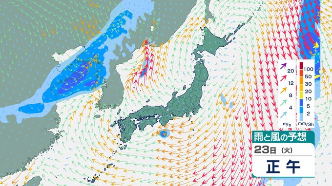 ニュースクリップ 【西高東低】22日は各地で強風、北海道は降雪、24日にかけては全国的に落雷・突風・ひょうに注意 伊豆諸島や沖縄など高波4メートル予想【雨と風のシミュレーション】 2025年12月22日(月) 11:32 国内 天気 23日(火)雨と風のシミュレーション