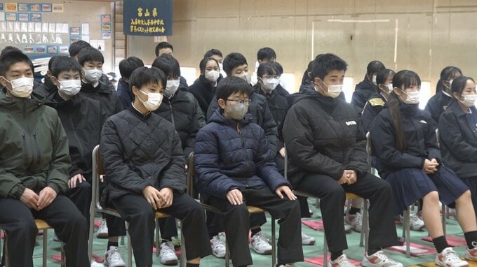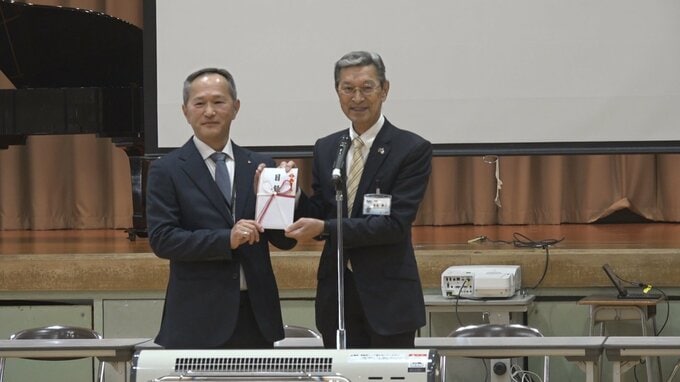 富山県入善町の自動車部品メーカーが、学校で役立ててもらおうと地元の中学校2校にジェットヒーターを贈りました。