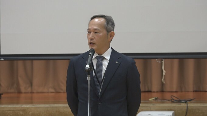 23日に入善西中学校で行われた贈呈式では、入善町に本社を置く自動車部品メーカー、アイシン・メタルテックの稲荷直樹取締役から入善町の笹島春人町長に目録が手渡されました。