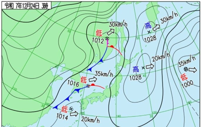 また、紀伊半島付近と東シナ海は気圧の谷となっています。