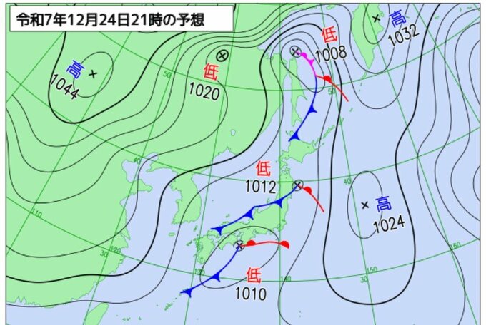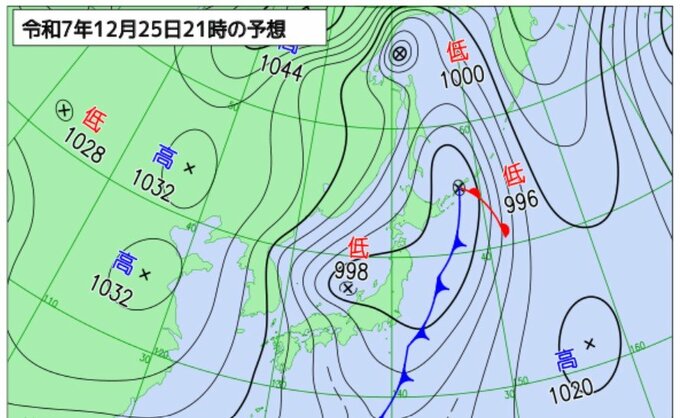 さらに25日から26日にかけては、日本海西部に発生した低気圧が発達しながら能登沖に進み、その後三陸沖から千島近海に進む予想です。