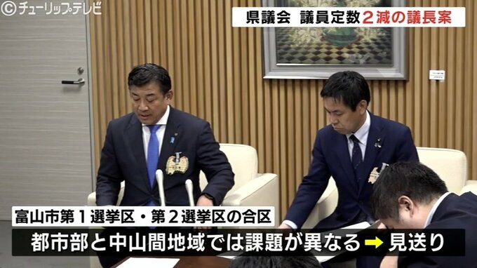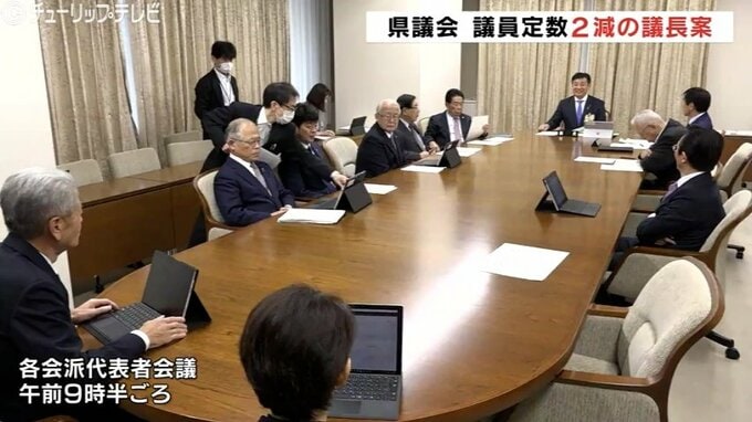 2027年春に行われる次期県議選に向け、富山県議会の議員定数を現行の40から2つ減らして、38とする議長案が示されました。