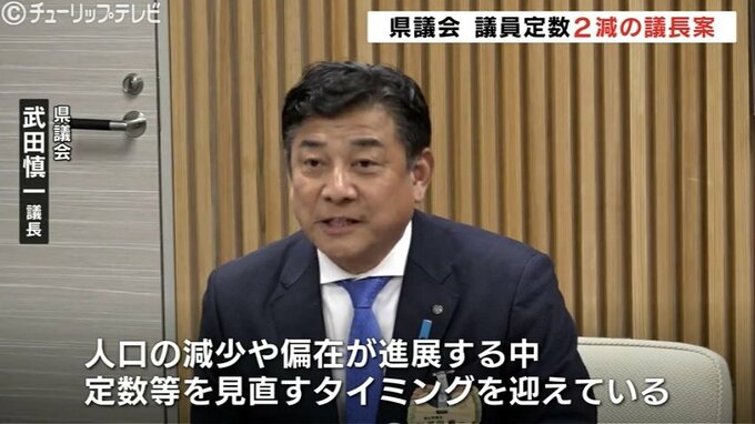 県議会 武田慎一議長「人口の減少や偏在が進展する中、定数等を見直すタイミングを迎えていると考えている」