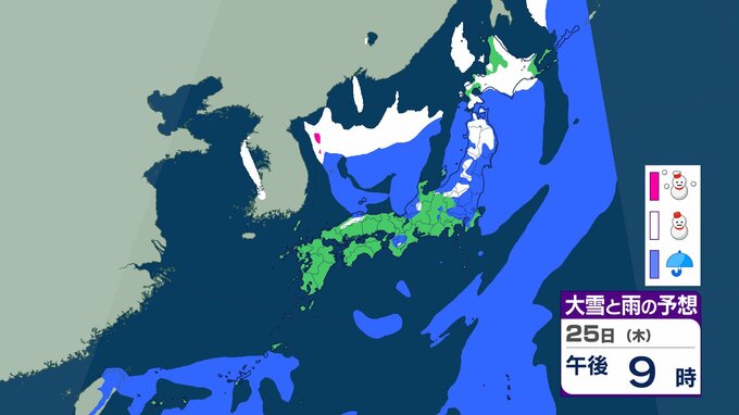 ニュースクリップ 長野県・関東地方北部 多いところで60cmの降雪予想 強い冬型の気圧配置となる影響 積雪や路面の凍結による交通障害に警戒を【雪と雨のシミュレーション】 2025年12月25日(木) 18:15 国内 天気 25日(木)の雨と雪のシミュレーション