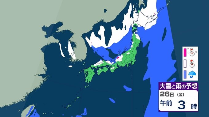 ニュースクリップ 長野県・関東地方北部 多いところで60cmの降雪予想 強い冬型の気圧配置となる影響 積雪や路面の凍結による交通障害に警戒を【雪と雨のシミュレーション】 2025年12月25日(木) 18:15 国内 天気 26日(金)の雨と雪のシミュレーション