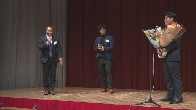 現役の野球部や応援部などから激励されたほか、野球部の恩師・前崎秀和監督や高校の先輩で巨人の森田駿哉投手から花束が贈られました。