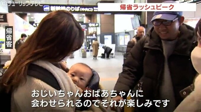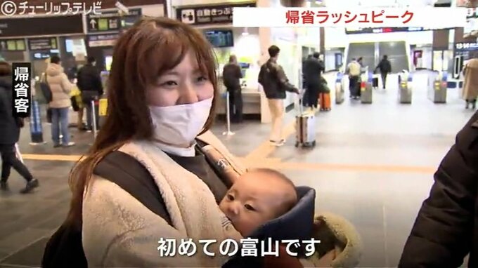 千葉から帰省:「初めての富山です。おじいちゃんおばあちゃんに会わせられるのでそれが楽しみです」