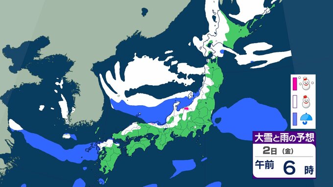 2日は普段雪の少ない地域でも降雪…Uターン注意 3日にかけて冬型の気圧配置続く…日本海側で警報級の大雪の可能性も【31日~1月4日まで 雪と雨のシミュレーション掲載】