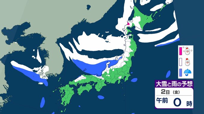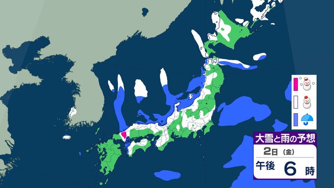 山口北部 多いところで30cm降雪予想 九州北部各地で降雪か 冬型の気圧配置が強まる見込み 2日から3日にかけて 【雨と雪のシミュレーション】