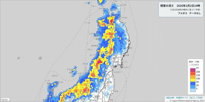 東北地方では、大雪の峠は越えましたが、冬型の気圧配置が続くため、2日明け方にかけて、大雪に注意してください。また、2日昼前から夜遅くにかけて、竜巻などの激しい突風や落雷に注意してください。