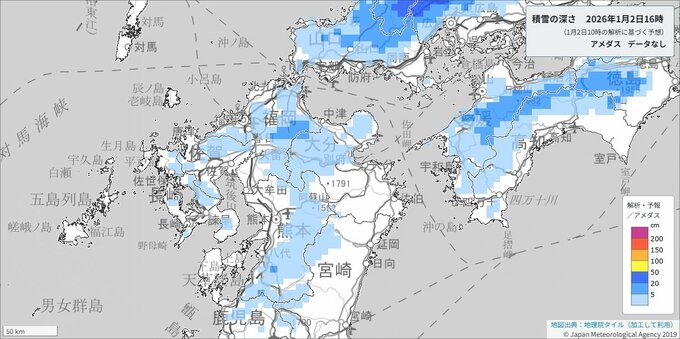 九州北部地方では3日朝にかけて、山地、平地ともに大雪となるおそれがあります。山口県では2日夕方から3日明け方にかけて大雪に警戒してください。