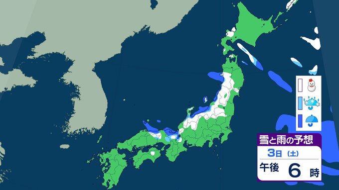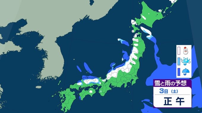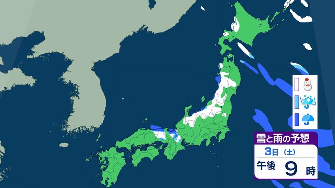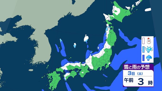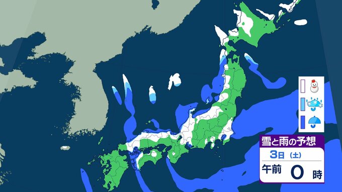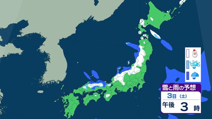 ニュースクリップ 【大雪情報】近畿地方 3日昼前に“警報級”大雪のおそれ…最大60cmの降雪予想 この冬一番の強い寒気流れ込み 【雨と雪のシミュレーション】 2026年1月2日(金) 16:06 国内 天気 3日の雨と雪のシミュレーション
