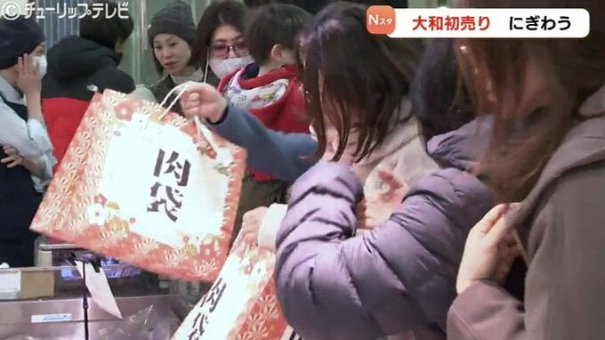 ことし、富山大和では、食料品を中心に全館で3500個の福袋を用意。1時間足らずで売り切れる店が出るなどにぎわっていました。