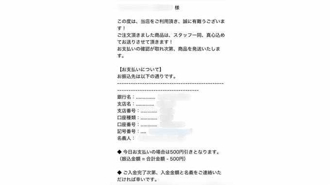 「きょう払えば500円引き」 口座名義に違和感も…