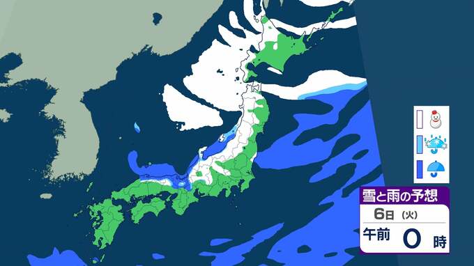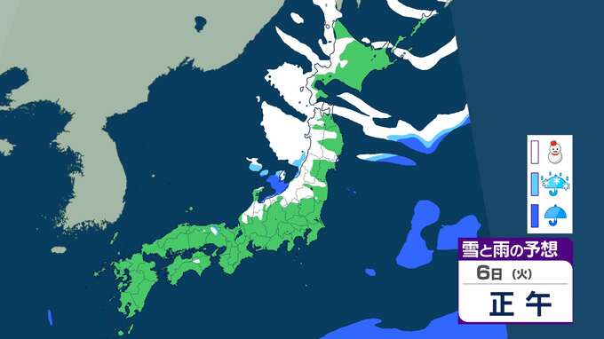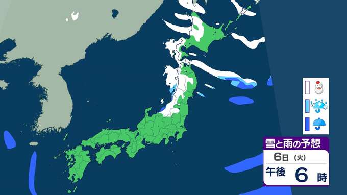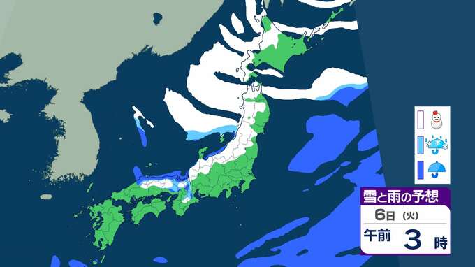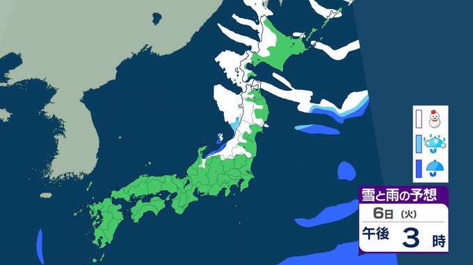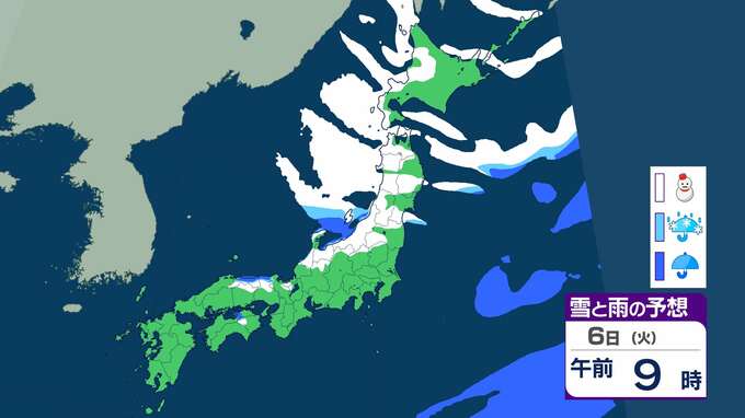 ニュースクリップ 【大雪情報】北陸で“警報級”大雪の可能性 最大で40cm降雪か 大雪による交通障害に注意・警戒【雨と雪のシミュレーション】 2026年1月3日(土) 09:18 国内 天気 6日の雨と雪のシミュレーション