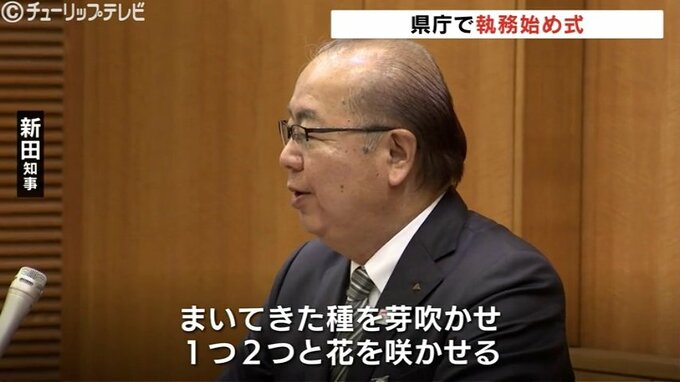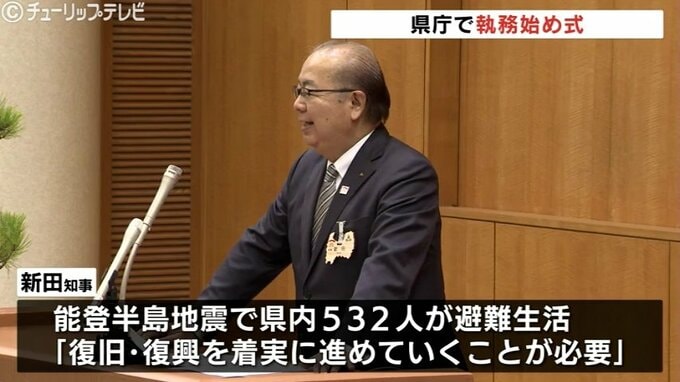 年頭の訓示で新田知事は、昨年末に新たに策定した県の総合計画について触れ、新年度の予算を成立させてきちんと実行していきたいと意気込みました。
