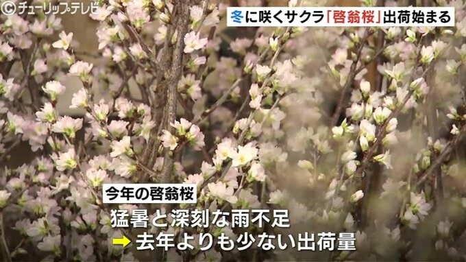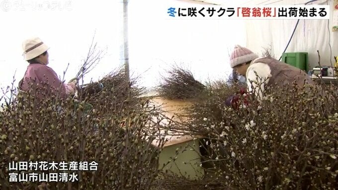 富山市の山田地域では、冬に咲く桜、「啓翁桜」の出荷が始まっています。