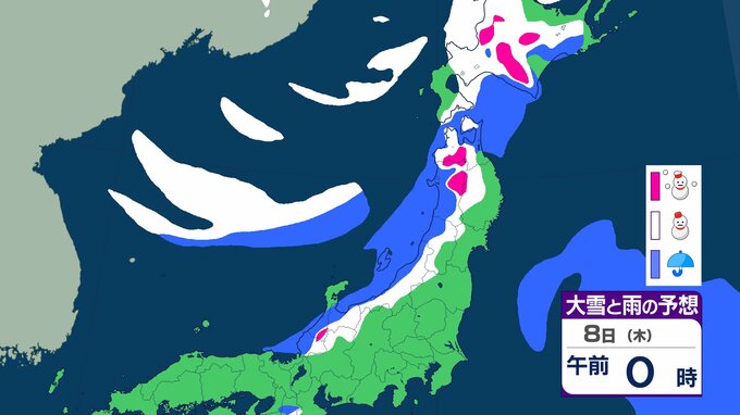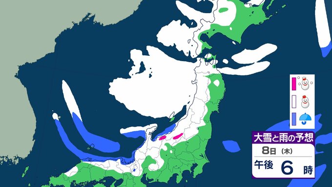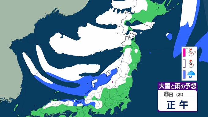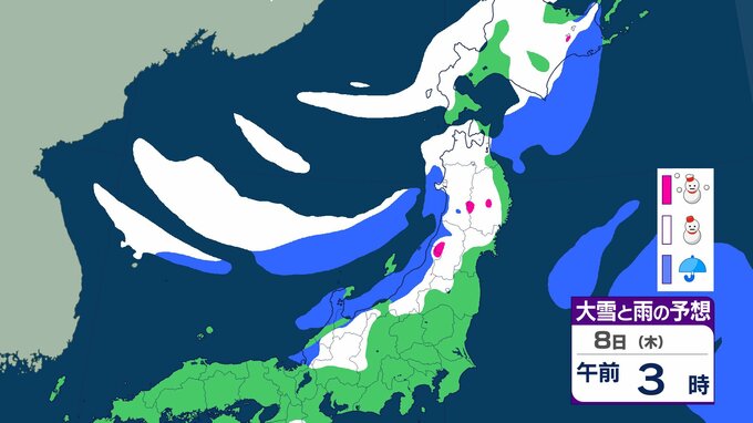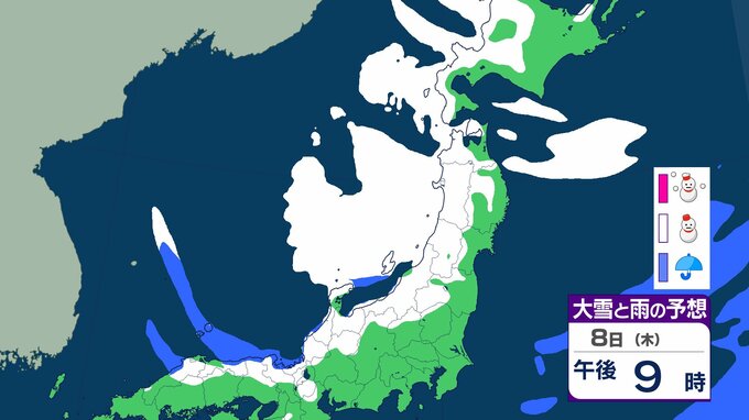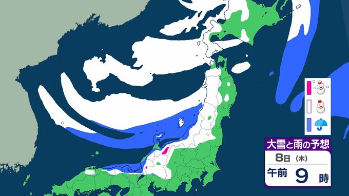 ニュースクリップ 【気象情報】東北地方は竜巻、落雷のおそれ…7日昼過ぎから8日にかけて日本海側で激しい突風に警戒 発達した積乱雲の兆しあれば建物内へ避難を【雨と雪のシミュレーション】 2026年1月7日(水) 08:40 国内 天気 8日(木)雨と雪のシミュレーション