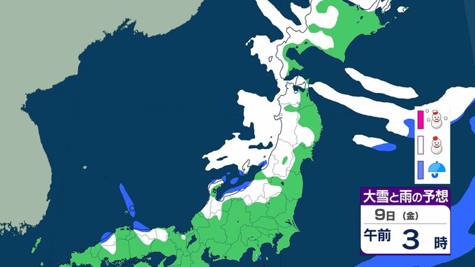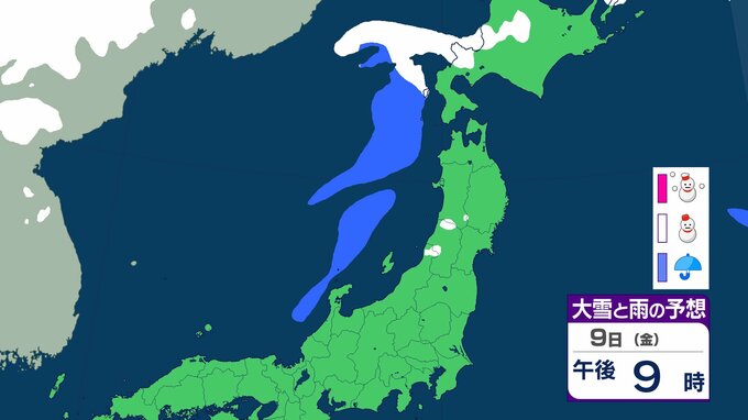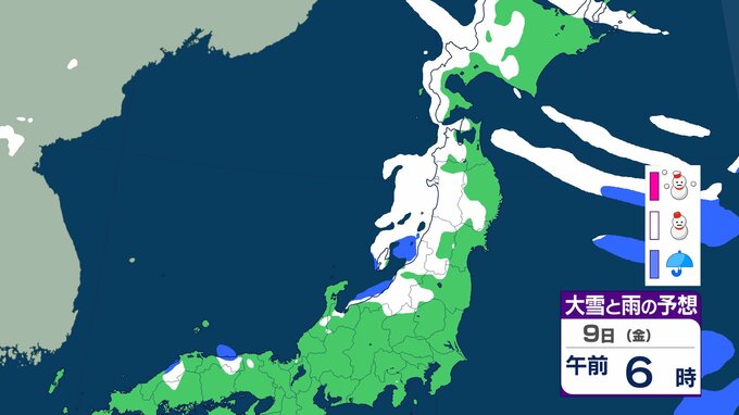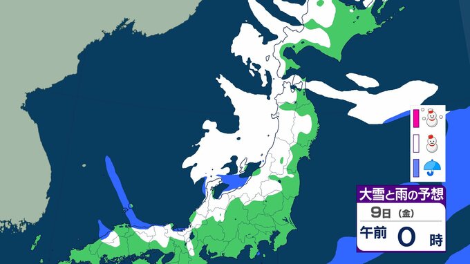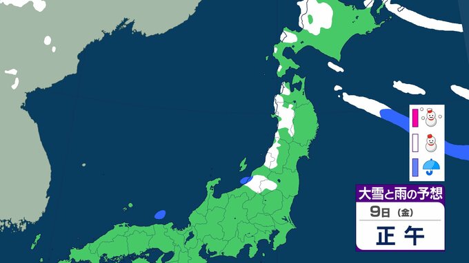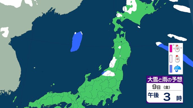 ニュースクリップ 【気象情報】東北地方は竜巻、落雷のおそれ…7日昼過ぎから8日にかけて日本海側で激しい突風に警戒 発達した積乱雲の兆しあれば建物内へ避難を【雨と雪のシミュレーション】 2026年1月7日(水) 08:40 国内 天気 9日(金)雨と雪のシミュレーション